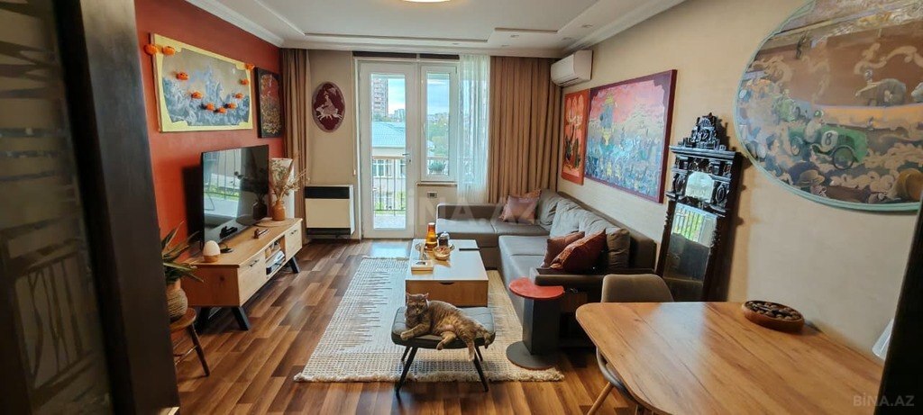Eyvanı yaşıl həyətə gözəl mənzərə açır və istirahət üçün əla imkan yaradır. Səliqəli şəkildə 2 otağa düzəlib. Mənzil gün ərzində bol təbii işıq alır və fərah bir yaşayış şəraitinə malikdir. Sakit yaşayış şəraitinə malikdir. Mənzil əlverişli mərkəzi mövqeyi, infrastrukturların (bağça, market, məktəb, dayanacaq, aptek, universitet) əlçatanlığı, həyəti, parkinqi ilə seçilir. Daimi qaz, su işıq və istilik sistemi, kondisioneri ilə əla yaşayış standartlarına malikdir.