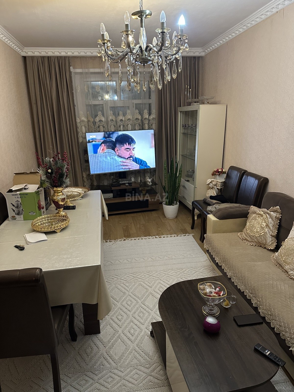 ev çox gözəl yerdə yerləşib.bina bütün müsbət keyfiyyətləri özündə daşıyır.Belə ki, daş binadır,şaxtadan ayrıca xətlə mərkəzləşdirilmiş istilik sisteminə birlədirilib. sanuzel ve hamam otagi isti döşəmədir.orta blokdur.binanin hər iki tərəfdən önü açıqdır.yeni təmir olunub.satmaq üçün deyil də özümüz üçün təmir etmişik.çox gözəl mebellərlə təchiz olunub.demək olar ki şəkildəki bütün əşyalarla satılır.sənəddə 52.8 yazılsa da bu köhnə hesablama ilə qeyd olunub.balkonları və s.evə əlavə etdiyimiz üçün realda 60kv-a yaxındır.həyətə maşınla giriş çıxış pultla , şlaqbaumla idarə olunur