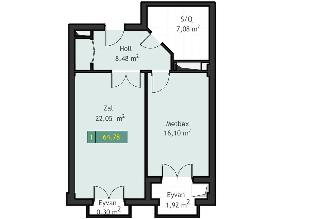 Menzil 47²m oldugundan 2 otaq etmek ucun cox elveriṣli prayekdi.