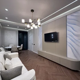 Mənzil keyfiyyətli materiallarla təmir olunub, döşəmə — parket.