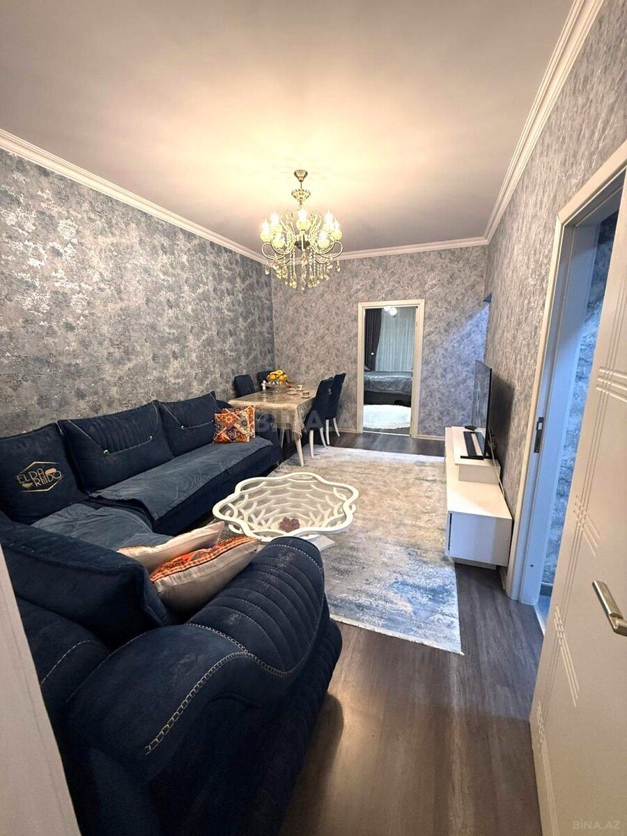 Menzil 1genis holl ( kolidor ) 1 genis qonaq otagi studip tipli, 2 yataq otagi, 2 sanuzel ve eyvandan ibaretdir. Menzil esyali satilarsa qiymet deyisilecek