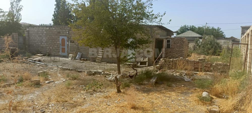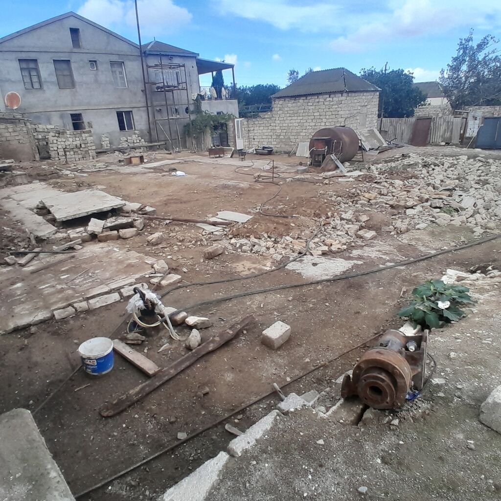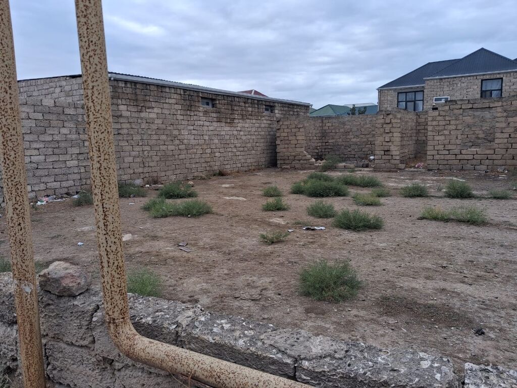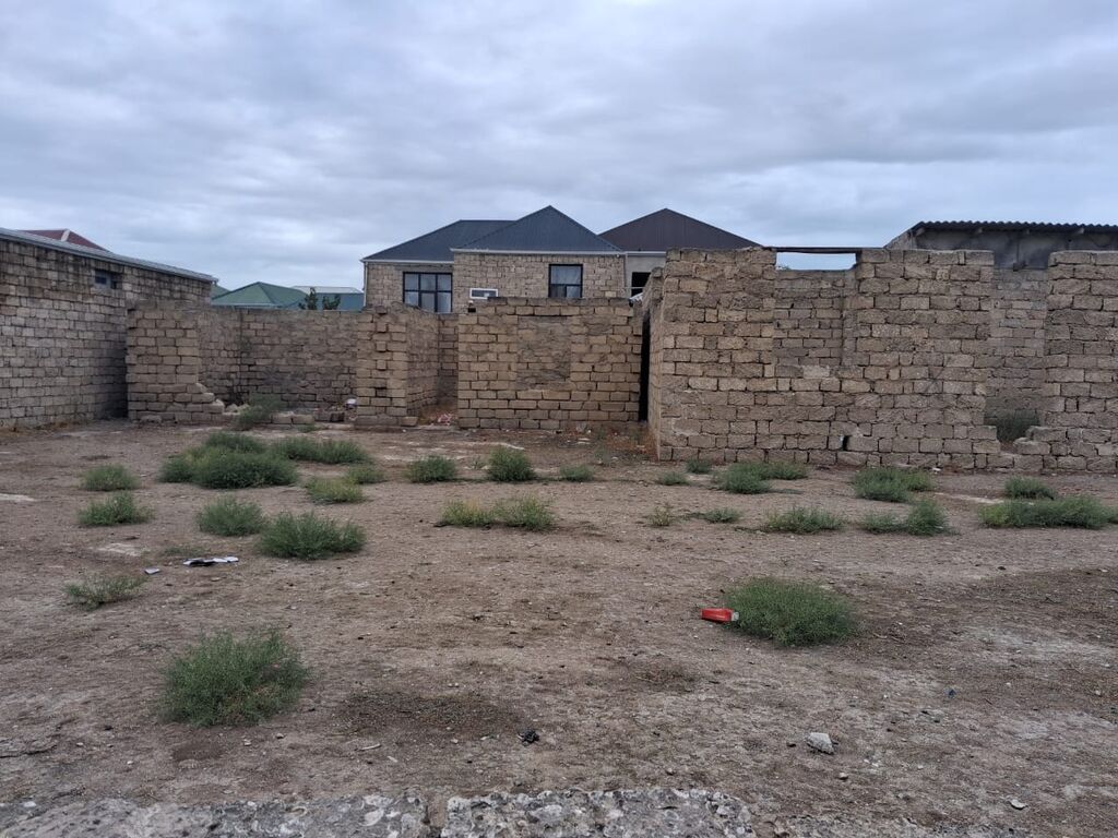 Hasarlı həyətyanı sahə – daş hasarla əhatələnmiş torpaq - Hündür, qalın daş hasarlarla çevrələnmiş həyətyanı torpaq sahəsi - İçəridə yarımçıq tikili/daş divar konstruksiyaları mövcuddur - Düz relyefli, geniş açıq meydança; avtomobil girişi üçün münasib - Ətrafda fərdi yaşayış evləri və məhəllə infrastrukturu görünür - Qaz/kommunikasiya xətləri məhəllədən keçir (fotoda qaz boruları görünür) - Landşaftda seyrək kol-kos, bərk torpaq örtüyü Fərdi ev, təsərrüfat, anbar və ya emalatxana üçün uyğun planlama potensialı olan sahə.