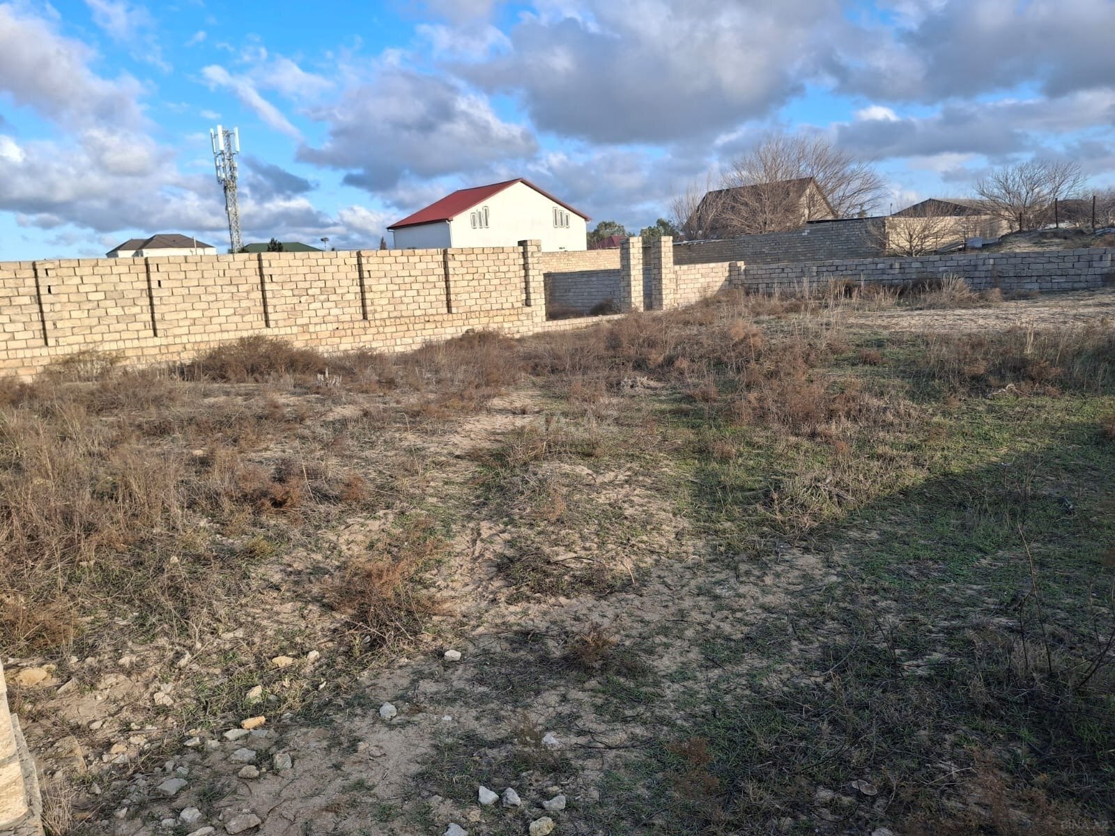 4 tərəfi hasara alınmış. Giriş darvazası var. Sahədə bir otaqlı ,veranda və hamam tualeti olan tikili mövcutdur. Meyvə agacları var. Sahədə,qaz,işıq(üç faza),texniki su(quyu). Sayğaclar hamısı sənədləşdirilib. Torpaq sahəsinin çıxarışı var. Sahədə ev tikmək icazəsi var.