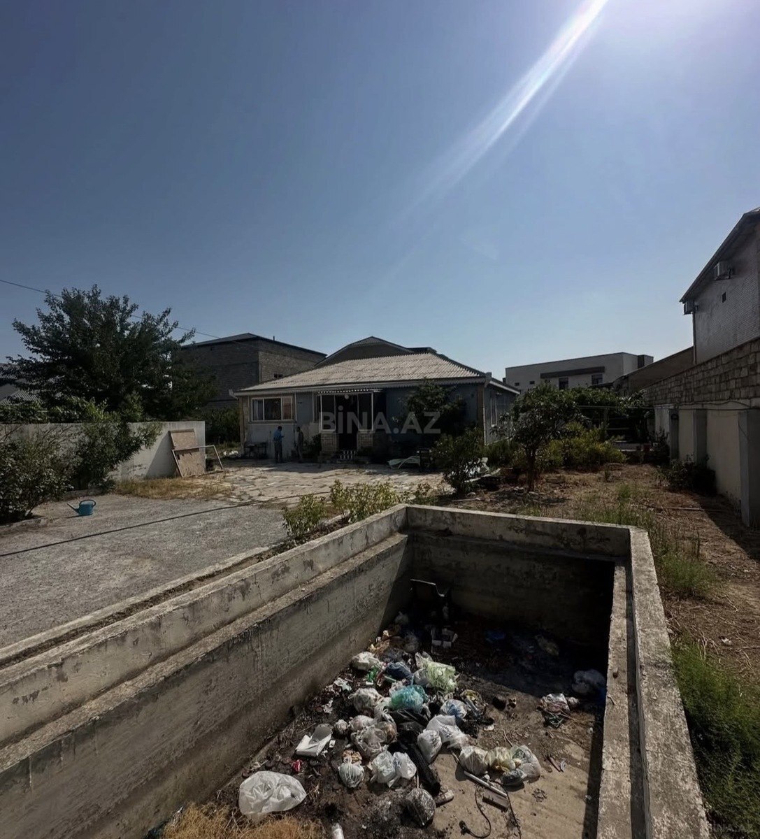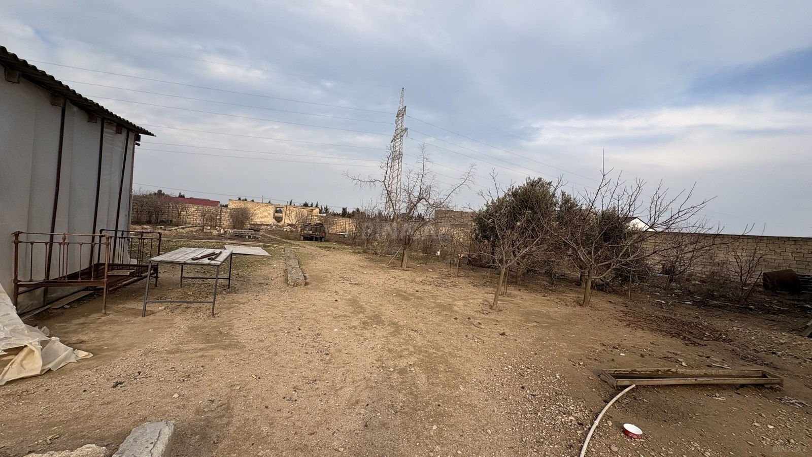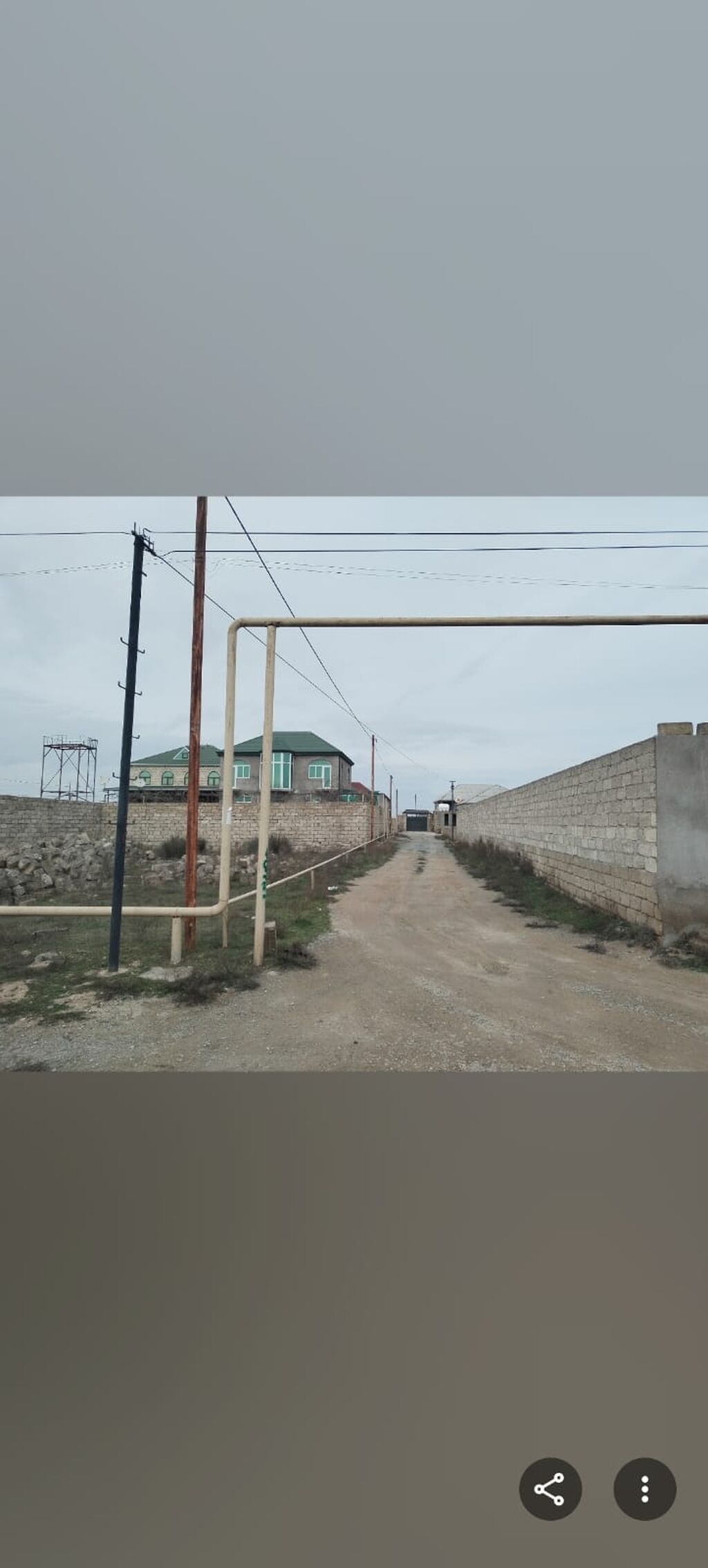 Torpaq sahəsi – hasarlı, məhəllədaxili - Tam daş hasarla əhatələnmiş həyət, darvaza yeri hazır - Daxilə qədər yol mövcuddur (şəkillərdə məhəllədaxili yol görünür) - Sahə hamar relyeflidir, tikinti üçün uyğun - Həyətdə bir neçə ağac var - Ətrafda yaşayış evləri və kommunikasiya xətləri (elektrik dirəkləri) mövcuddur - Şəxsi həyət evi, bağ evi və ya əlavə təsərrüfat tikintisi üçün münasib ölçülü açıq meydança Qeyd: Şəkillərdə sahənin ümumi vəziyyəti, hasarları və məhəllə yolu əks olunub.