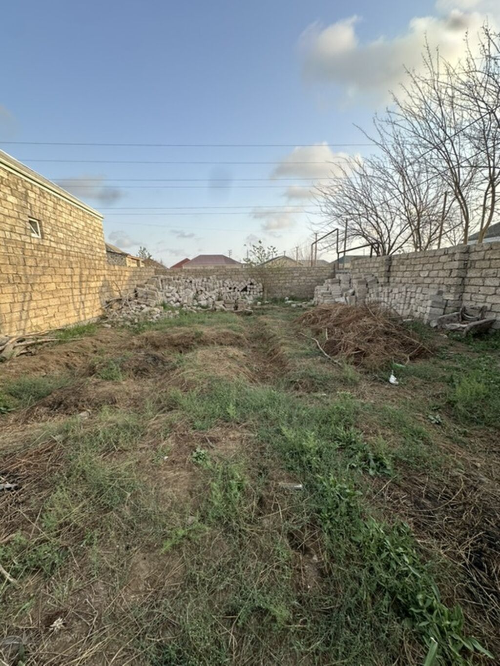 Torpaq sahəsi – fərdi yaşayış tikintisi üçün əlverişli boş sahə. - Dörd tərəfi daş hasarla əhatələnib, qonşuluqda yaşayış evləri var - Düz relyef, giriş-çıxış üçün geniş darvaza yeri nəzərdə tutula bilər - Sahədə mövcud tikinti materialları (daş/kubik yığınları) mövcuddur - Şəhər/qəsəbə daxili sakit məhəllə, yaxınlıqda kommunikasiya xətləri və infrastruktura çıxış imkanı (yol, işıq, su, qaz xəttinə qoşulma potensialı) - Landşaft və bağ salmaq, həmçinin fərdi ev layihəsi üçün münasib planlama imkanı Yaşayış evi, bağ evi və ya əlavə tikililər üçün geniş imkanlar təklif edən hasarlı torpaq sahəsi. real aliciya endirim olacaq.