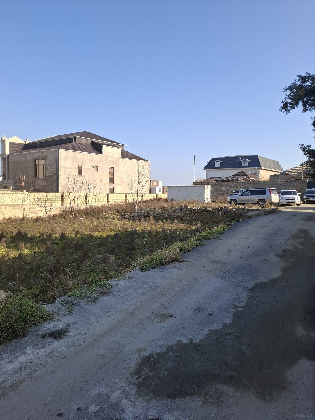 Torpaq sahəsi satılır - Təyinat: fərdi yaşayış evi tikintisi üçün yararlı torpaq sahəsi - İnfrastruktur: küçədən keçən qaz xətti, elektrik dirəkləri və hava xətti; yaxınlıqda su anbarı/çatdırılma nöqtələri görünür - Yol: məhəllədaxili geniş torpaq yoluna birbaşa çıxış; əsas yola yaxınlıq - Mühit: hasarlı məhəllə, ətrafda fərdi evlər və tikililər - Relyef: düz, tikintiyə uyğun sahə - Giriş: avtomobillə rahat daxilolma, küçə boyunca qaz boruları üçün keçid karkasları mövcuddur Ailə evi, bağ evi və ya fərdi layihə üçün əlverişli seçimdir.