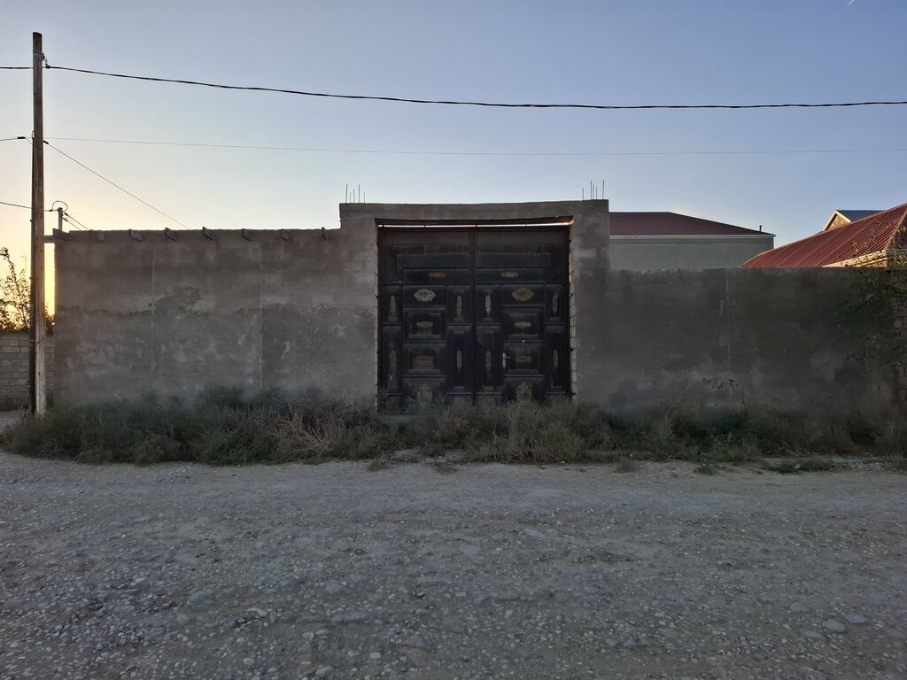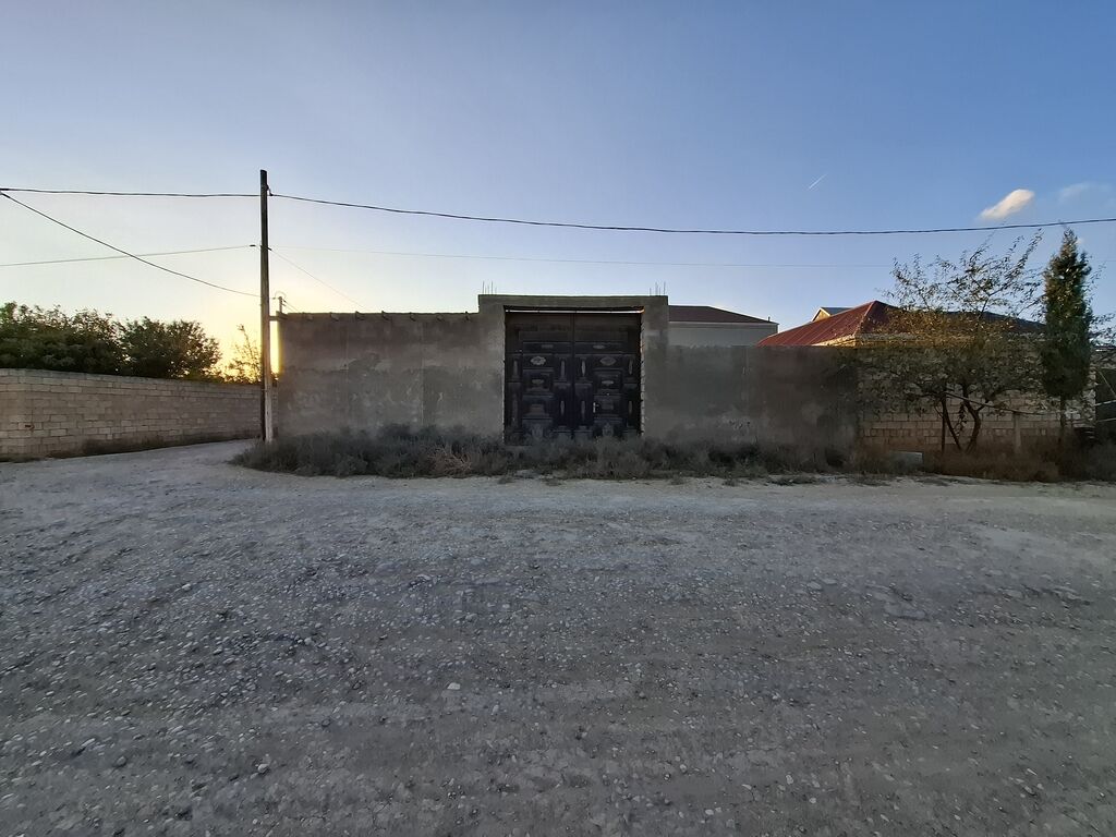 Torpaq sahəsi – daş hasarla tam əhatəli, dəmir darvazalı - Yüksək daş hasar ilə əhatə olunub, təhlükəsiz və qapalı perimetr - Geniş ikiqanadlı metal darvaza – avtomobil girişinə uyğun - Küncə yaxın, iki küçəyə çıxışı olan yol qovşağı (çınqıllı yol) - Daxildə tikinti üçün bünövrə hazırlığı olan hissələr görünür, üst örtük üçün ara kirişlər çəkilib - Kommunikasiya xətləri küçədən keçir: elektrik dirəkləri və hava xətti mövcuddur - Sakit yaşayış məhəlləsi, ətrafda fərdi evlər - Düz relyef, rahat planlama imkanı - Hündür hasar, qonşulardan vizual izolyasiya Fərdi yaşayış evi, bağ evi, usta sexi və ya anbar tikintisi üçün əlverişli sahə. Şəhəryanı zonada geniş imkanlar təqdim edir.