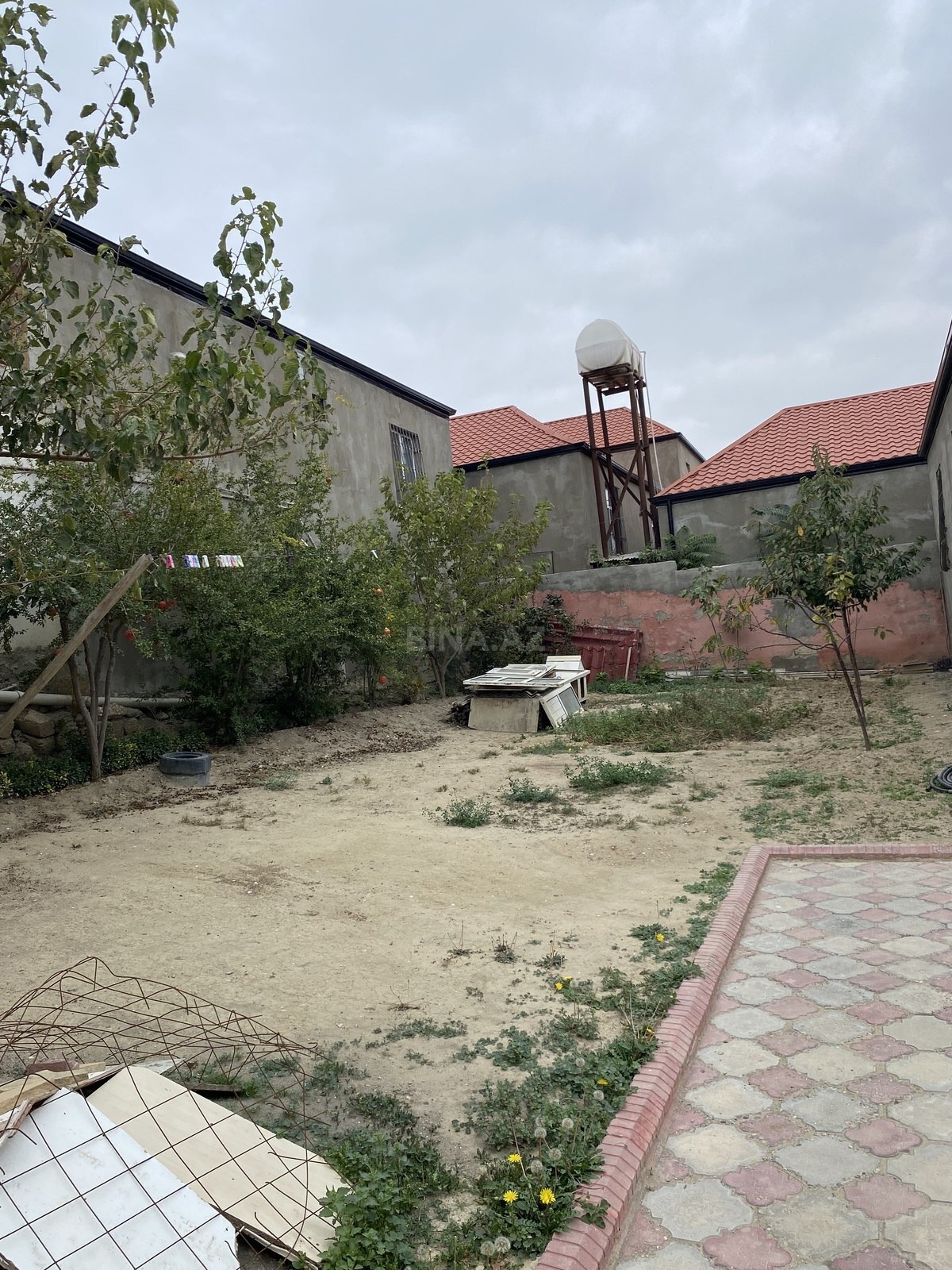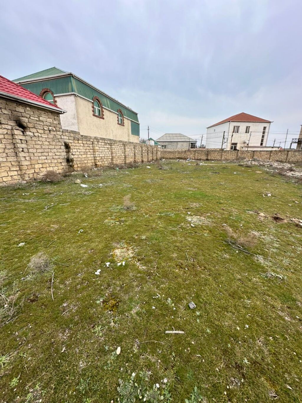 Torpaq sahəsi – hasarlı, məhəllədaxili - Tam daş hasarla əhatələnmiş həyət, darvaza yeri hazır - Daxilə qədər yol mövcuddur (şəkillərdə məhəllədaxili yol görünür) - Sahə hamar relyeflidir, tikinti üçün uyğun - Həyətdə bir neçə ağac var - Ətrafda yaşayış evləri və kommunikasiya xətləri (elektrik dirəkləri) mövcuddur - Şəxsi həyət evi, bağ evi və ya əlavə təsərrüfat tikintisi üçün münasib ölçülü açıq meydança Qeyd: Şəkillərdə sahənin ümumi vəziyyəti, hasarları və məhəllə yolu əks olunub.